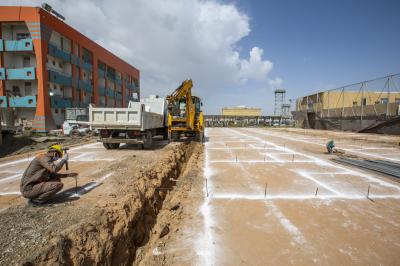 Il a ajouté: "Pendant cette période, des bases en fer pour la fixation des fondations et des structures murales seront installées, car ces travaux sont préparés avant de couler le sol."