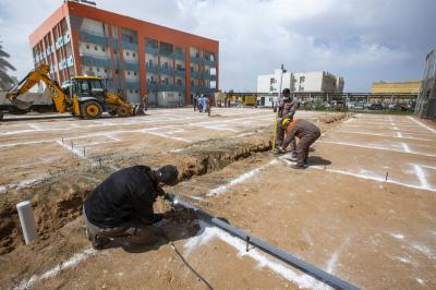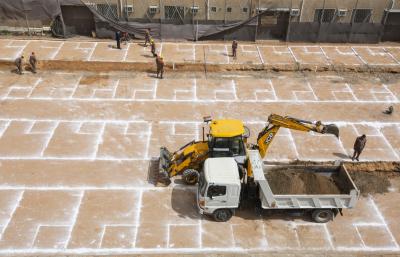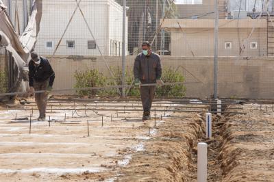 Le personnel travaillant dans le département de maintenance ingénierie du sanctuaire saint Al Abbas a commencé les travaux d'infrastructure pour le projet de construction du centre de traitement pour les personnes atteintes du virus Covid 19.