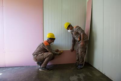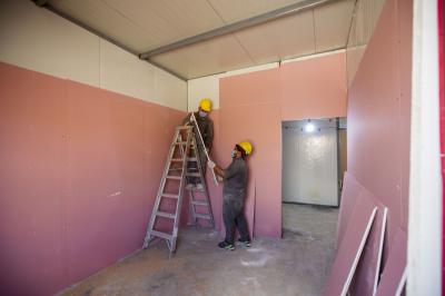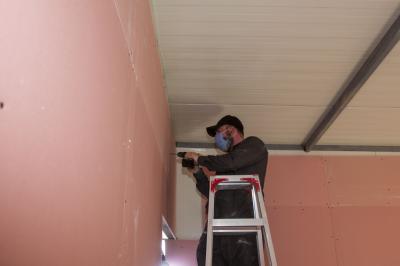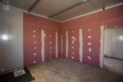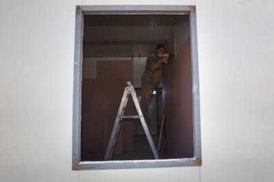 Er fügte hinzu: "Es wird daran gearbeitet, das (PVC) des Servicebereichs in jedem Raum in Verbindung mit den Arbeiten zum Abdecken der Böden zuzuschneiden, sodass die Maler mit den ersten Arbeiten beginnen können."