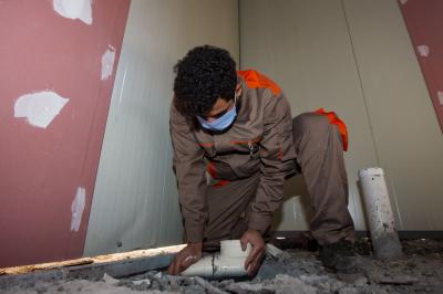 Er wies darauf hin: "Die Arbeiten der fünften Phase umfassen die Fertigstellung der Installation der weißen Blockmaterialstücke in den Räumen, während die Mitarbeiter der Elektrizitätsabteilung der Sektion mit den Arbeiten zur elektrischen Verkabelung begannen."