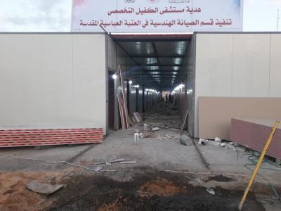 It is noteworthy that this work came in compliance with the recommendations and directives of the Supreme Religious Authority in support of medical staff, and within the campaign of the Holy Shrine for the protection of society from the Corona pandemic, as the staff working in the engineering maintenance department of the Holy Shrine under the direct guidance of the Senior Official of the Holy Shrine; His Eminence Sayed Ahmad Al-Safi, by establishing and building a lobby for treating people infected by the novel pandemic of Coronavirus, in the medical city of Imam al-Hussayn (peace be upon him) in the holy city of Karbala, and under the supervision of the Medical Affairs Division at the al-Abba's (p) Holy Shrine and the al-Kafeel Specialized Hospital, as a precautionary measure if something new - God forbid - takes place, and as a reserve for the halls of Dar Al-Hayat in the city designated to receive such cases.