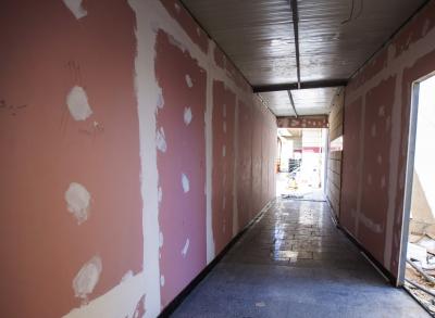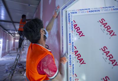 - مرحلة عزل الأرضيّة عن الجدران وصلت الى نسبة أكثر من (70%).
