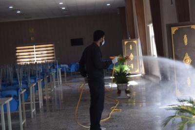 Kamati inayo simamia majengo ya Shekh Kuleini yaliyopo katika barabara ya (Karbala – Bagdad) inaendelea na opresheni ya kupuliza dawa kwa ajili ya kujikinga na mambukizi ya virusi vya Korona.