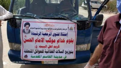 مسؤولُ الوحدة التابعة لقسم المواكب والهيئات الحسينيّة في العتبتَيْن المقدّستَيْن الحسينيّة والعبّاسية الشيخ أحمد جبير بيّن قائلاً: "باشرنا بدعم العوائل منذ اللحظات الأولى لصدور توجيهات المرجعيّة الدينيّة العُليا وضمن حملة القسم، وما زلنا متواصلين حتّى انتهاء هذه الأزمة التي ألقت بظلالها على العراق والعراقيّين، وكان نصيب العوائل الفقيرة والمتعفّفة التي تعتاش على قوت يومها النصيب الأكبر من الضرر، ممّا توجّب علينا أن نقف ونعلن عن تضامننا وتكافلنا معهم ومدّهم بمئات السلّات الغذائيّة يوميّاً".