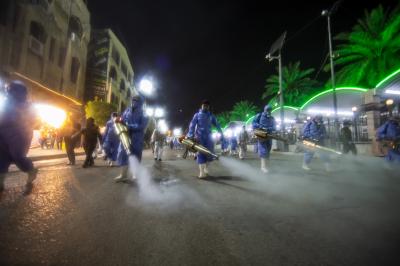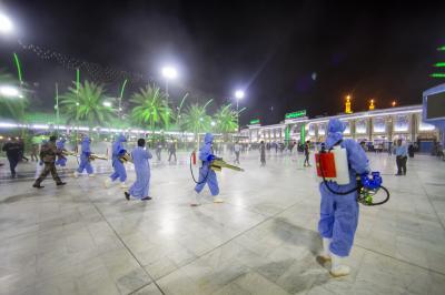 وشملت الحملة الأخيرة التي كانت قد نظّمتها ليلة أمس الثلاثاء، تعفير وتعقيم كلٍّ من منطقة ما بين الحرمَيْن الشريفَيْن والمناطق المحيطة بهما وعموم مركز المدينة.