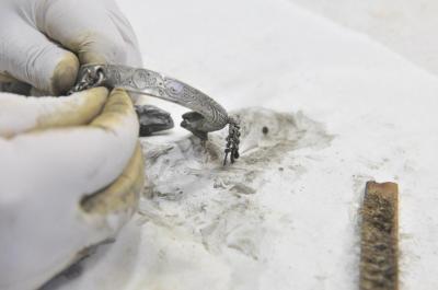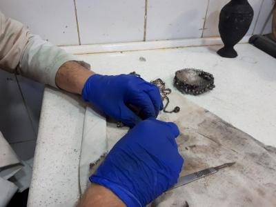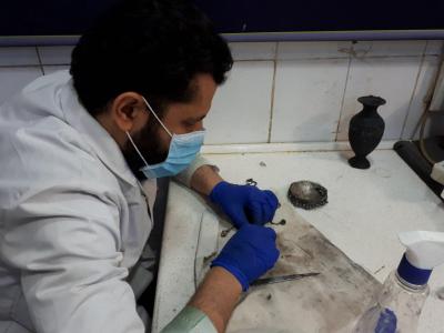 وأضاف: "بين الأعمال المناطة بوحدتنا هي صيانة وإدامة القطع الفضّية، من حُليّ ومصوغاتٍ سواءً كانت في فاترينات العرض، حيث تكون لنا جولاتُ فحصٍ مستمرّة للكشف عن المتضرّر، أو المتواجدة في خزانة المقتنيات، وإنّ أعمال الصيانة تتمّ وفقاً لطرائق علميّة حديثة تتلاءم وطبيعة هذا المعدن وما يحويه من أشكالٍ زخرفيّة، وبما لا يؤثّر عليها ويحفظ شكلها العام".