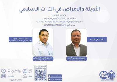 Das Indexierungs- und Informationssystemzentrum der Bibliothek und des Hauses der Schriftrollen und Manuskripte der Heiligen Abbassitischen Stätte organisiert ab Dienstag, dem 12.05.2020, eine Stunde lang von 16-17 Uhr (Bagdader Zeit) ein digitales Symposium (Webinar) über (Epidemien und Krankheiten in der islamischen Histologie) im Rahmen des Programms (ZOOM Cloud Meetings).
