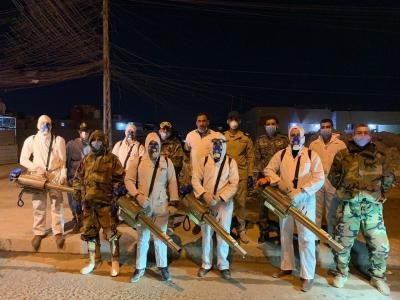 Dans le cadre de ses mesures préventives contre l'épidémie de Corona, le personnel de l'équipe de combat d'Abbas (paix soit sur lui) (brigade / 26 mobilisation populaire) a mené une campagne massive de stérilisation dans un certain nombre de quartiers du gouvernorat de Bassora.