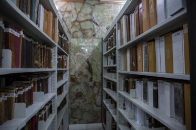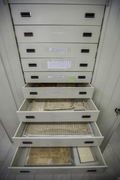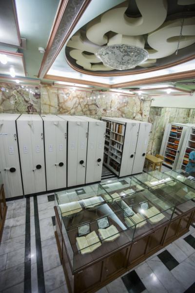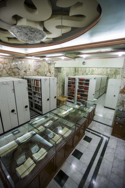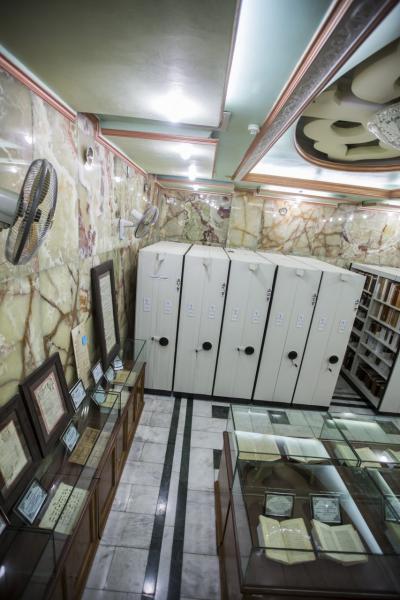 وأضاف: "الخزانةُ عبارة عن قاعةٍ حصينة أُنشِئت بمواصفاتٍ فنّية خاصّة جدّاً، مزوّدة بعددٍ من الخزانات المعدنيّة الموزّعة حسب استخدامها للمخطوطة أو الوثيقة، وهذه الغرفة مزوّدة بأجهزةٍ ومعدّات تعمل على المحافظة على هذه المقتنيات الأثريّة، حيث تعمل على توفير بيئةٍ للخَزْن من ناحية درجات الحرارة والرطوبة المناسبة، وغيرها من الأمور التي تسهم في خلق أجواءٍ مثاليّة للحفظ، وفق المعايير الدوليّة من درجة الحرارة وهي 18 – 20 درجة مئويّة، والرطوبة بمعدل 45 - 55%، وكذلك زوّدت هذه الغرفة بمستشعرات حراريّة وأجهزة مرتبطة بمنظوماتٍ للسيطرة على الحرائق".