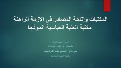 -Herr Ammar Hussein Al-Jawad vom Zentrum für digitale Information der Bibliothek der Heiligen Stätte, dessen Forschungstitel lautete: (Bibliotheken und die Verfügbarkeit von Ressourcen in der aktuellen Krise ... Die Heilige Abbassitische Stätte als Beispiel).
