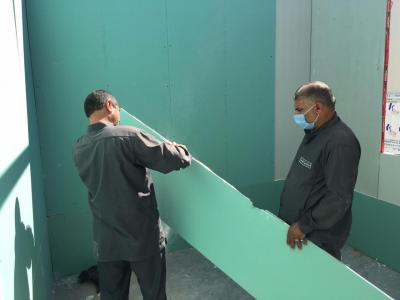 انتهت ملاكاتُ قسم الصيانة الهندسيّة في العتبة العبّاسية المقدّسة، العاملة بمشروع ردهة الحياة الرابعة لعلاج المصابين بوباء كورونا في محافظة كربلاء، من جميع أعمال تغليف المقاطع الحديديّة بـ(السندويج بنل) للقسم الثاني من المشروع، البالغة مساحته (600) مترٍ مربّع من مساحة المشروع الكلّية البالغة (1000) مترٍ مربّع، والتي تضمّ غرف العزل بنظام (سويت) البالغ عددها (15) غرفةً ذا ثلاثة أسرّة، من ضمنها غرفٌ خاصّة بالملاكات الطبّية والمجموعات الصحّية الخاصّة بها، والغرف الإداريّة والصيدليّة.