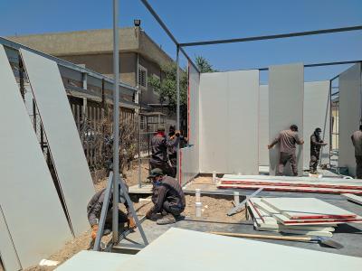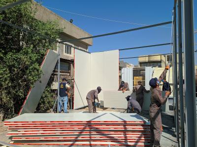 صبح سویرے سے ہی روضہ مبارک حضرت عباس علیہ السلام کے انجینئرنگ مینٹیننس ڈیپارٹمنٹ کے عملے نے دارالحکومت بغداد میں کورونا وائرس سے متاثرہ افراد کے علاج کے لئے پانچویں الحیات کورونا یونٹ کے پہلے حصے میں چوتھے مرحلے کا آغاز کر دیا ہے۔ اس مرحلے کے دوران آئرن سٹرکچر پر سینڈوچ پینلز کی تنصیب کا کام مکمل کیا جائے گا۔