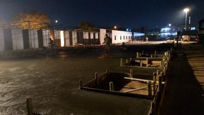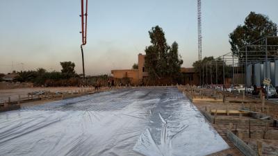 Le personnel du Département de maintenance technique a terminé le coulage des fondations en béton de la deuxième partie du cinquième centre Al Hayat à Bagdad, où les travaux ont été effectués tard dans la nuit.