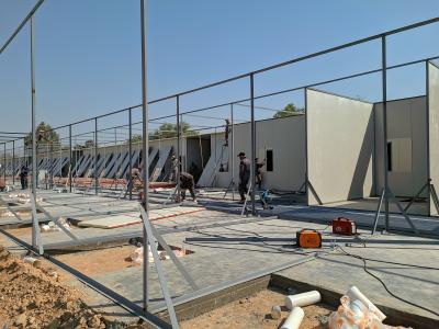 انہوں نے مزید کہا: "اس یونٹ کے پہلے حصے میں کام ، جس کا رقبہ (1377) مربع میٹر ہے اور یہ (56) کمروں پر مشتمل ہے، میں سینڈوچ پینل کی تنصیب کے بعد انسولیٹنگ پارٹیشنز (جپسم بورڈز) لگانے کا کام بھی تکیملی مراحل میں پہنچ چکا ہے، جبکہ باتھ روم میں پلمبنگ کا کام جاری ہے اورسیوریج سسٹم پر بھی کام کیا جا رہا ہے۔