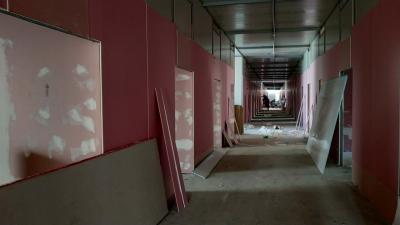 - اس منصوبے کے دوسرے حصے کا رقبہ 1377 مربع میٹر ہے اور اس میں بھی (56) سنگل کمرے ہیں۔ اس حصے میں آہنی ڈھانچے پر سینڈوچ پینلز کی تنصیب کا عمل تکمیل کے قریب ہے، اس کے علاوہ اس حصے میں جپسم بورڈز کو لگانے کے ساتھ ساتھ انفراسٹرکچر کے دیگر کام بھی جاری ہین۔