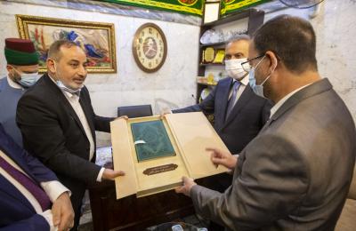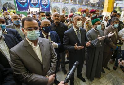 Il a été reçu par le Secrétaire général du sanctuaire saint Al Abbas ; l'ingénieur Muhammad Al-Ashiqar, son adjoint, et un certain nombre de membres distingués de son conseil d'administration. Ensuite, il est allé achever les cérémonies de ziyarat bénie d'Abou Al-Fadl Al-Abbas (que la paix soit sur lui) et prier dans son honorable sanctuaire.