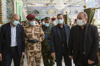 Le secrétaire général du sanctuaire saint Al Abbas, son adjoint et certains membres du conseil d'administration ont rencontré l'honorable superviseur de l'équipe de combat Al Abbas (que la paix soit sur lui), le chef d'état-major de l'armée irakienne, le lieutenant général Abdul Amir Rashid Yar-Allah, qui était accompagné du commandant des forces terrestres et de plusieurs dirigeants du ministère de la Défense et des opérations de la ville sainte de Karbala et de sa police, cet après-midi, lundi (6 Dhu al-Hijjah 1441 AH) correspondant au (27 juillet 2020).