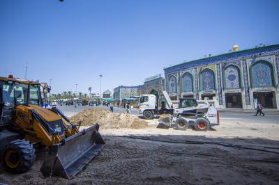 The staffs of the Maintenance and Engineering Construction Department at the al-Abbas's (p) Holy Shrine are still continuing their work in developing, rehabilitating and reorganizing the courtyard facing the Qibla gate of the Shrine of Aba Al-Fadl Al-Abbas (peace be upon him), to which they will add hundreds of meters and contribute to increasing its spaces and capacity to accommodate the numbers of visitors, especially during the special Ziyarat seasons, which witnesses severe crowds for visitors, which affects the performance of their devotional works and their Ziyarat when they cannot enter the Holy Shrine.