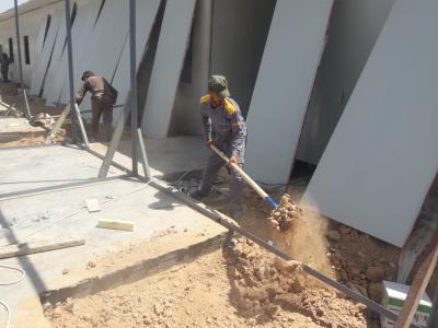 He added: "The works in the first and second parts, each of which has an area of (800) square meters, and contains (42) single rooms, are continuing according to each joint of their infrastructural works and preparing them for covering them with insulated sections, sanitary wiring works and their infrastructures."