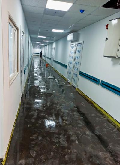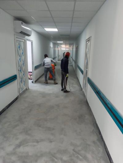 - إنجاز تغليف أرضيّة المجموعة الصحّية لكلّ غرفة، والعمل على إنجاز تأسيسات الصرف الصحّي للمتبقّي منها.