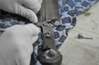 وأضاف: "تقع أعمالُ الترميم هذه على عاتق وحدة الترميم التابعة لشعبة مختبر متحف الكفيل، ولديها فريقُ عملٍ متخصّص يمتلك من الخبرة والكفاءة الشيء الكثير، واستطاع أن يرمّم ويصون عدداً من الأسلحة الناريّة سواءً كانت بنادق أو مسدّسات، وقد اكتسب الفريقُ هذه الخبرة من الدورات التي زُجّ فيها إضافةً الى تطبيقه العمليّ لمخرجات أيّ دورة، فضلاً عن ذلك التخصّص الدقيق للمرمّم، ولأنّ متحف الكفيل يعجّ بهذا النوع من القطع المتحفيّة (الأسلحة الناريّة) سواءً المعروضة أو المخزونة، والعمل جارٍ على ترميم ما تبقّى من القطع أو ما يرد الى المتحف من هدايا".