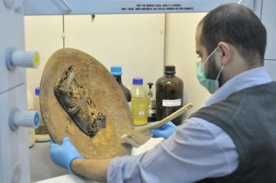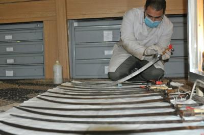 وتواصلُ كوادرُ وملاكات مختبر متحف الكفيل للنفائس والمخطوطات في العتبة العبّاسية المقدّسة، أعمال الترميم والصيانة وفق الطرق العلميّة والفنّية للقطع الأثريّة والنفائس التي يضمّها المتحف، سواءً المعروضة منها أو التي لم تُعرض.