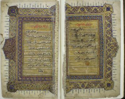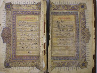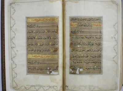 Der Direktor des oben genannten Zentrums, Herr Laiith Ali Lotfi, sagte gegenüber dem Al-Kafeel Netzwerk: „Das Zentrum für die Wiederherstellung und Aufbewahrung von Manuskripten verfügt durch die Gnade Gottes, dem Allmächtigen, über das Fachwissen, das es qualifiziert, alle Manuskripte zu restaurieren. Eins davon ist das aus dem vierzehnten Jahrhundert nach der Auswanderung (Hijra) und seine Eleganz sind auf die Verzierungen auf der äußeren Hülle zurückzuführen, die neben den pflanzlichen Motiven, Phalangen und Vergoldungen auf Papier als glasierte Hülle (Emailen) bezeichnet wird, sowie auf die Namen der Suren, die mit reinem Gold geschrieben wurden. Dies ist ein Merkmal, das dieser Koran auszeichnete und uns gleichzeitig einen Anstoß gab Um ein solches Manuskript zu restaurieren. "