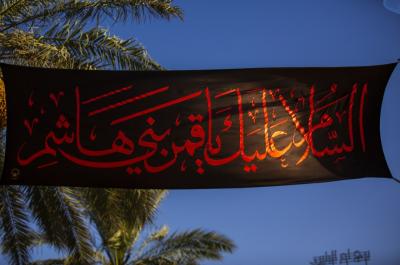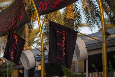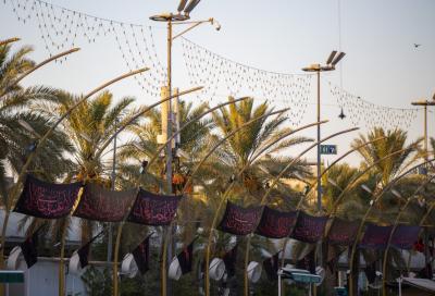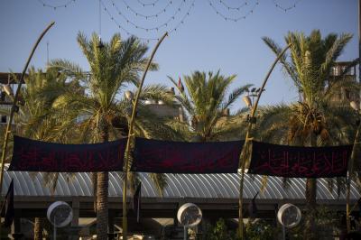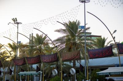 وی افزود: همچنین پلاکاردهای سیاهی میان پرچمها آویخته شده است که بر روی آن عبارت «السلام عليك يا سيّد الشهداء» و «يا قمر بني هاشم» با رنگ قرمز نوشته شده است.