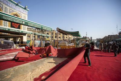 Mukaddes Hz.Abbas (Allah’ın selâmı üzerine olsun) Türbesi bünyesindeki Harem-i Şerîf’in Bakımı ve Sahn-ı Şerîf’in Bakımı bölümleri Harem-i Mutahhar ve ana avlunun temizlenmesi kampanyası kapsamındaki çalışmalarını tamamladı. Muharrem ayının onuncu gününde ziyarete gelen ve taziye sunmak isteyen ziyaretçilerin gelişi için yapılmış olan tüm özel hazırlıklar kaldırıldı.