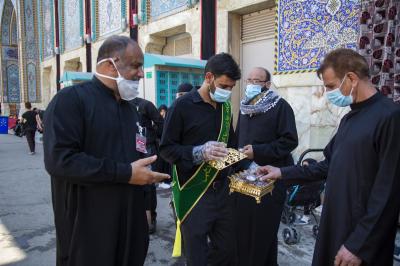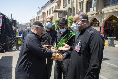 Le personnel de la Division de la plantation et de l'ornement du département de la zone entre les deux sanctuaires saints ont récolté les fruits de palmier (dattes) dont les arbres sont dans la cour honorable à côté de ses toits, puis les ont distribués aux visiteurs en deuil ayant l'intention de visiter les deux sanctuaires sacrés en ces jours douloureux, commémorant l'incident immortel Al Taff et le martyr de l’imam Al Hussein (paix sur lui) et sa famille et ses compagnons (que Dieu soit satisfait d'eux), gratuitement comme cadeaux de bénédiction, en plus de les distribuées sur les malades du Coronavirus qui se soignent dans les hôpitaux et sur les propriétaires des processions.