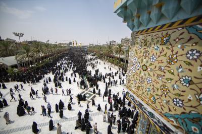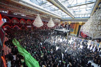 Après la prière de Dhuhr, des milliers de personnes en deuil se sont jointes à la procession des grandes condoléances; la procession de Baní Asad dans le sanctuaire de Sayed Jawda au sud-ouest de Karbala, en direction de la route de Qibla de l'Imam Al-Hussein (que la paix soit sur lui) jusqu'au sanctuaire sacré puis vers la zone située entre les deux sanctuaires sacrés, et défilé est conclu au porte-étendard Aba Al-Fadl Al-Abbas (que la paix soit sur lui).
