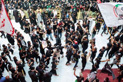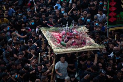Après la prière de Dhuhr, des milliers de personnes en deuil se sont jointes à la procession des grandes condoléances; la procession de Baní Asad dans le sanctuaire de Sayed Jawda au sud-ouest de Karbala, en direction de la route de la Qibla de l'Imam Al-Hussein (que la paix soit sur lui) jusqu'au sanctuaire sacré puis vers la zone entre les deux sanctuaires sacrés, et défilé se termine au sanctuaire du porte-étendard de l'imam al-Hussein; Aba Al-Fadl Al-Abbas (la paix soit sur eux deux).