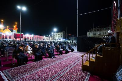 Le Majlis de consolation se poursuit pendant deux jours, à partir d'hier soir, avec une conférence donnée par Cheikh Salam Al-Askari, et ce matin une conférence Husseinite a été donnée par M. Hisham Al-Battat, et il y a une autre conférence du soir par Sayeed Nasrat Qashqash Al-Amili, en présence d'un groupe de serviteurs du sanctuaire pur et d'un certain nombre de visiteurs, selon le nombre autorisé pour ce lieu, , et dans les espaces désignés par les autorités compétentes.