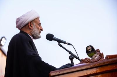 عقب ذلك كانت هناك مرثيّةٌ ألقاها الشيخ عامر الخطيب، لتُقام بعدها مراسيمُ رفع الراية على ساريةٍ يبلغ ارتفاعُها (40) متراً، ويبلغ عرضُ الراية (13) متراً وطولُها (17) متراً، وقد خُطّت عليها من الوجهَيْن باللّون الأحمر عبارةُ: (السلامُ عليكَ يا حاملَ لواء الحسين).