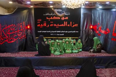 استُهِلّ البرنامج العزائيّ بتلاوة آياتٍ من الذكر الحكيم، من ثمّ محاضرة عن السيّدة رقيّة(سلام الله عليها) ومظلوميّتها وما عانت منه في رحلة موكب السبايا، واختُتِمت بمرثيّة ترنّمت أبياتها بحادثة شهادتها(عليها السلام)، وبعدها كان هناك عرضٌ مسرحيّ، ومن ثمّ إقامة مجلسٍ عزائيّ، والختام كان بقصيدةٍ لفرقة الأطفال التي قدّمت المسرحيّة.