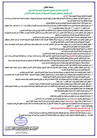 - موکب ها به نامه های رسمی برای ارائه به مراکز بازرسی مسیرهای خارجی و داخلی مجهز خواهند شد تا ماموریت آنها تسهیل شود.