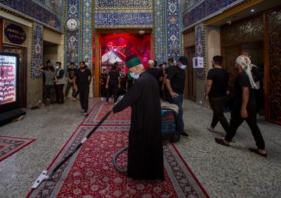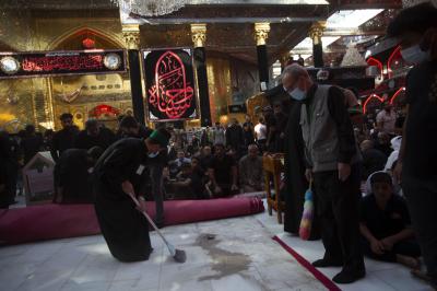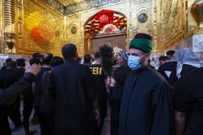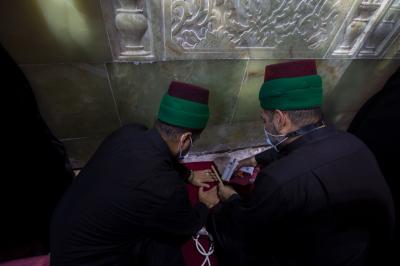 روضہ مبارک حضرت عباس(ع) کے سادة الخدم کے شعبہ کے ارکان اپنا روایتی لباس پہنے ہوئے چہلم امام حسین(ع) کے موقع پر آنے والے زائرین کی خدمت کے لیے روضہ مبارک کے اندر اور دوسرے تمام مراکز میں 24گھنٹے زائرین کی خدمت میں سر گرم عمل ہیں۔
