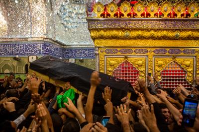 اس کے بعد ما بین الحرمین سے ہوتے ہوئے جنازہ کو روضہ مبارک امام حسین(ع) لے جایا گیا کہ جہاں پر بھی تشیع جنازہ اور زیارت کے مراسم ادا کیے گئے۔