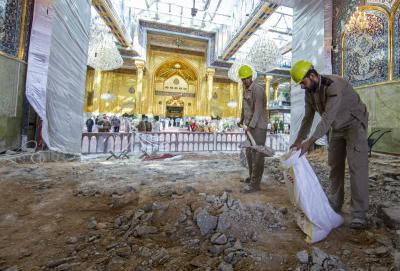 The Department of Engineering Projects at the al-Abbas's (P) shrine announced that it has started the paving work to clad the floor of the Qibla gate of the shrine of Aba al-Fadl al-Abbas (peace be upon him), which includes the area extending from the yard overlooking it which was cladded earlier this year, all the way to the point of contact with the floor of the holy sanctuary.