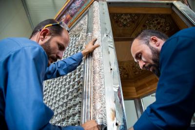 Le chef du département de fabrication des grilles et des portes des sanctuaires sacrés du sanctuaire sacré d'al-Abbas (p) ; M. Nazem al-Ghurabi, a expliqué au réseau al-Kafeel, en disant: «Après l'accord de la direction du Secrétariat général du sanctuaire sacré d'al-Abbas (p), notre personnel a commencé la mise en œuvre et la fabrication d'une nouvelle grille pour le sanctuaire de la main gauche d'Aba al-Fadl al-Abbas (que la paix soit sur lui), après approbation de ses projets spéciaux , et ses inscriptions et décorations inspirées de la grille du sanctuaire sacré. "