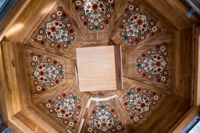 La base da la structure est une base décorative de 18,5 cm, la partie supérieure est liée à une autre partie décorativeavec une épaisseur de 16,5 cm, liée à la bande d'écriture poétique avec une bande décorative de 60 cm.