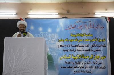 أقام البيتُ الثقافيّ في قضاء الهنديّة بالتعاون مع مؤسّسة الإبداع الفكريّ للثقافة والإعلام، ورعاية الأمانة العامّة للعتبة العبّاسية المقدّسة صباح اليوم الجمعة (19 ربيع الأوّل 1442هـ) الموافق لـ(6 تشرين الثاني 2020م)، مهرجانَ الرّحمة الإلهيّة السنويّ بمناسبة مولد الرسول الأعظم(صلّى الله عليه وآله).