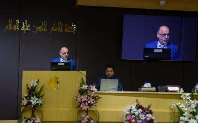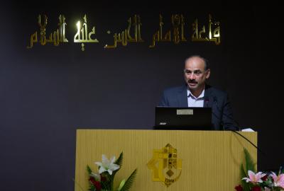 After that, a member of the Board of Directors of the al-Abbas's (p) Holy Shrine, Professor Dr. Abbas Rashid Al-Mousawi, delivered a speech on behalf of its secretariat, and during which he conveyed the greetings of the Senior Officer of the Holy Shrine, His Eminence Sayed. Ahmad Al-Safi and his wishes that the conference will achieve its desired goals, and this edition will be crowned with success.