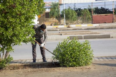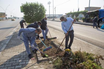 The cadres of the Service Affairs Department at the al-Abbas's (P) holy shrine launched a wide cleaning campaign of the main entrances and the external roads leading to the Karbala governorate, in order to show them in the most beautiful way and to support the efforts of the governorate's service cadres.