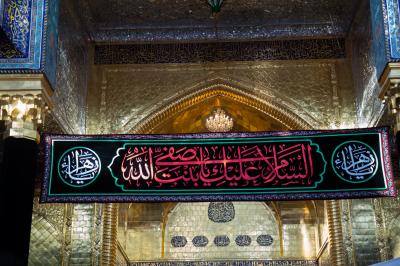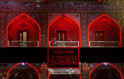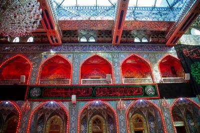 Atabatu Abbasiyya tukufu na korido zake zimewekwa mapambo meusi na kuta zake zimefunikwa vitambaa vyeusi vilivyo andikwa maneno yanayo ashiria huzuni katika kukumbuka kifo chake.