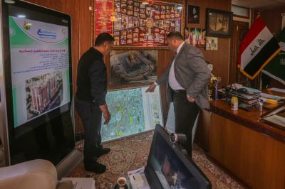 A delegation from the ministry, headed by Professor Basem Dhari Mahmoud, Director General of Sector Planning, visited the Engineering Projects Department at the al-Abbas's (p) Holy Shrine, and met with Eng. Dia Majeed Al-Sa'egh, who briefed the delegation on the projects that has been implemented and those that are under implementation and their completion rates, as well as the projects that have been suspended due to the financial crisis.