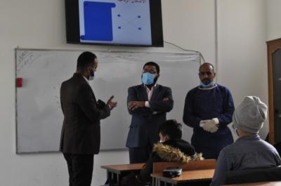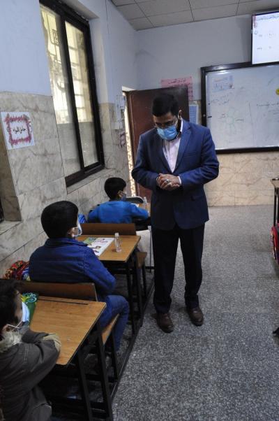 مبيّناً: "اتّخذ الفريقُ الزائر إجراءاته المتّبعة ضمن البرنامج الوقائيّ، حيث قام بإجراء الفحوصات (المسحات) لعددٍ من التلاميذ والملاكات التعليميّة في المدرسة أيضاً، وكذلك اطّلع وتابع ما يُتّخذ من الإجراءات الصحّية المتّبعة داخل المدرسة من قِبل اللجنة الصحّية، وما توفّره إدارة المدرسة من وسائل وقائيّة للتلاميذ، من أجل تهيئة الجوّ الصحّي العامّ لإكمال المسيرة التعليميّة والتربويّة".