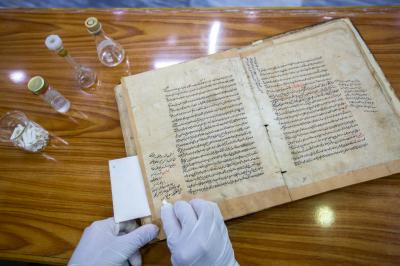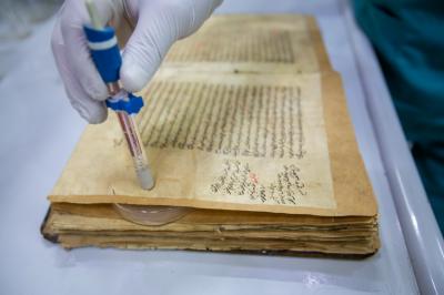 Le directeur du centre, M. Laith Lutfi, a expliqué au réseau Al-Kafeel: «C'est l'un des départements les plus importants du centre, où tout ce qui est dans les anciens manuscrits est analysé, et les matériaux de base impliqués dans la restauration processus sont préparés. Les travaux de restauration dépendent entièrement du laboratoire de chimie qui est dirigé par des professionnels et des spécialistes dans ce domaine, qui ont une expérience dans le traitement scientifique et pratique, que ce soit avec des produits chimiques malgré leur danger, ou avec le manuscrit. "