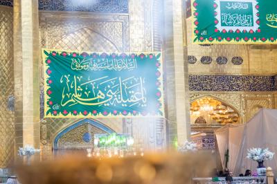 Banners of greetings and congratulations were hanged on the walls of the al-Abbas's (p) holy shrine, and its pavilions were adorned to celebrate this occasion, which means a lot to the lovers of Ahl al-Bayt (peace be upon them), especially at the shrine of her beloved brother Aba al-Fadl al-Abbas (peace be upon him).