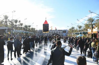 وی افزود: بنابراین در چنین ایامی تجهیزات عزاداری را چند روز قبل از سالروز شهادت آماده می کنند. همچنین در کوچه ها و خیابانها پارچه های سیاه آویخته و مجالس سوگواری در حسینه های کربلا برپا می دارند. دسته های عزاداری نیز از یکی از خیابانهای منتهی به حرم مطهر عباسی آغاز به حرکت کرده و وارد صحن مطهر ایشان می شود و سپس مسیر خود را با عبور از بین الحرمین تا حرم مطهر امام حسین (علیه السلام) ادامه می دهند.